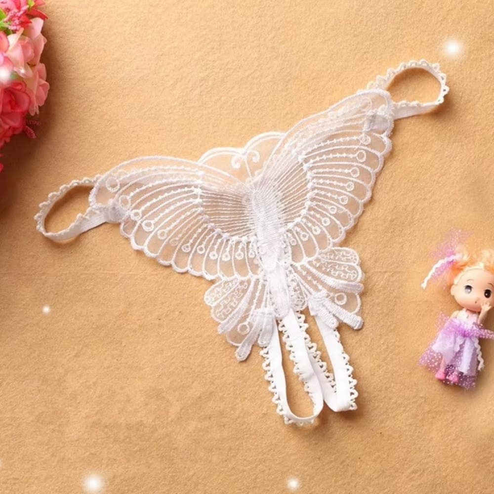 Еротичні білі мереживні стрінги метелик — це витончена білизна, створена для того, щоб підкреслити вашу жіночність і додати образу спокуси. Модель виконана з тонкого ажурного мережива, яке створює ефект легкості та делікатності. Витончена форма крилець візуально підкреслює лінію стегон і робить силует більш виразним.