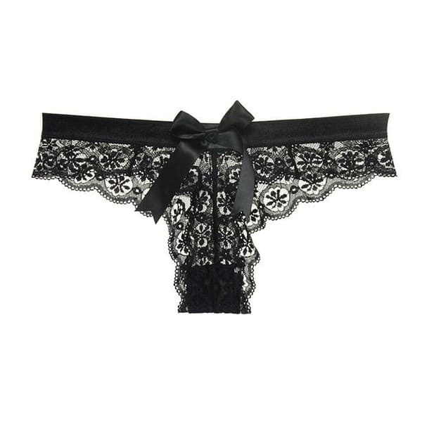 Трусики жіночі з бантиком мереживні стрінги чорного кольору з низькою талією. Позаду на стрінгах знаходиться бантик.